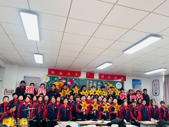 比赛现场,各班级方阵依次登场,整齐的着装、饱满的精神状态让人印象深刻。指挥同学从容抬手,旋律便随之流淌:有的班级选择经典励志歌曲,歌声铿锵有力,尽显少年担当;有的班级改编歌词融入班级特色,创意十足;部分班级巧妙加入朗诵、轮唱、队形变换等元素,让表演更具感染力。从悠扬婉转的和声到激昂高亢的合唱,每一首歌曲都承载着班级的独特记忆,每一个眼神都传递着团结的力量。