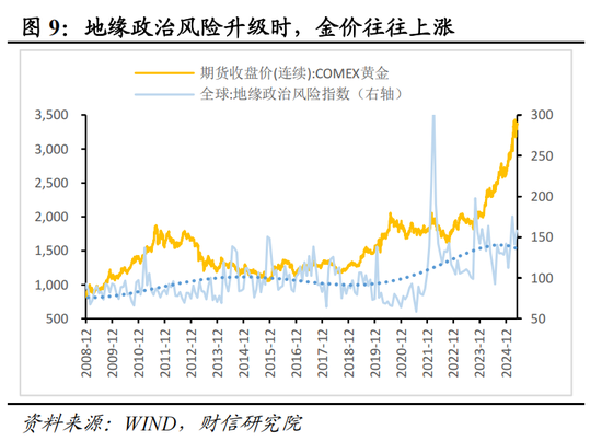 二是全球秩序重构下,地缘冲突长期存在,持续提升黄金避险价值。与以往两轮黄金牛市不同的是,过去两轮牛市都处于世界经济全球化浪潮中,地缘冲突呈散点偶发状态,而当前世界正处于逆全球化进程中,地缘冲突呈现长期化、复杂化特征,显著强化黄金的避险属性。其一,俄乌冲突远未结束,且存在恶化可能性。俄乌战争进入第三年,虽然美国已作为调解者强势介入冲突谈判,但俄乌乃至俄欧双方矛盾将长期存在,俄欧关系不可能发生根本性改变,且为维护北约稳定性,德国已经公开介入并支持乌克兰,未来俄乌战争面临再度升级甚至蔓延至北约各国的可能性。其二,中东乱局将长期存在,其复杂性不仅在于地区内部力量的碎片化,还叠加了外部的大国博弈。一方面,以色列、伊朗、沙特、土耳其等国各有战略诉求,而非国家行为体的崛起(如真主党、胡塞武装)进一步削弱了传统的国家主导格局;与此同时,美国、俄罗斯等大国的介入使得中东成为全球博弈的缩影。其三,中美竞争升级。美国对中国的围堵持续加码,从金融制裁、科技封锁、贸易战到拉拢盟友进行联合遏制,美对中的遏制并非短期政策,中美关系不排除将从经济、竞争转变到系统性对抗的可能。