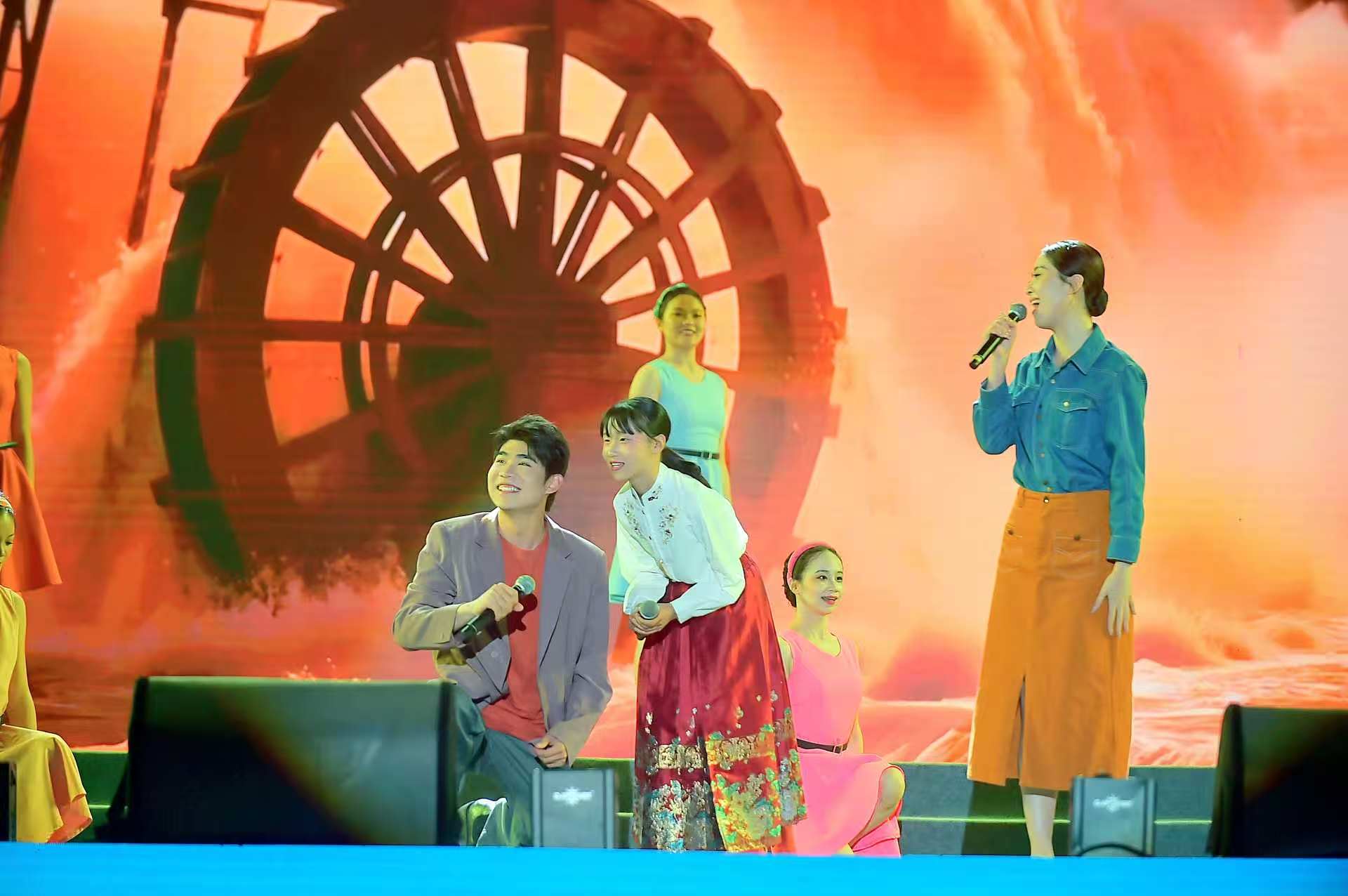文艺汇演在《山河共仰・家国同源》中拉开序幕,表演者以气势恢宏的演绎,瞬间点燃了现场气氛,将观众带入华夏文明的源流之中。通过“桑间同耕、丝路同裳、家国同心、同心同行”四大篇章层层递进,为观众呈现了一场视听盛宴。