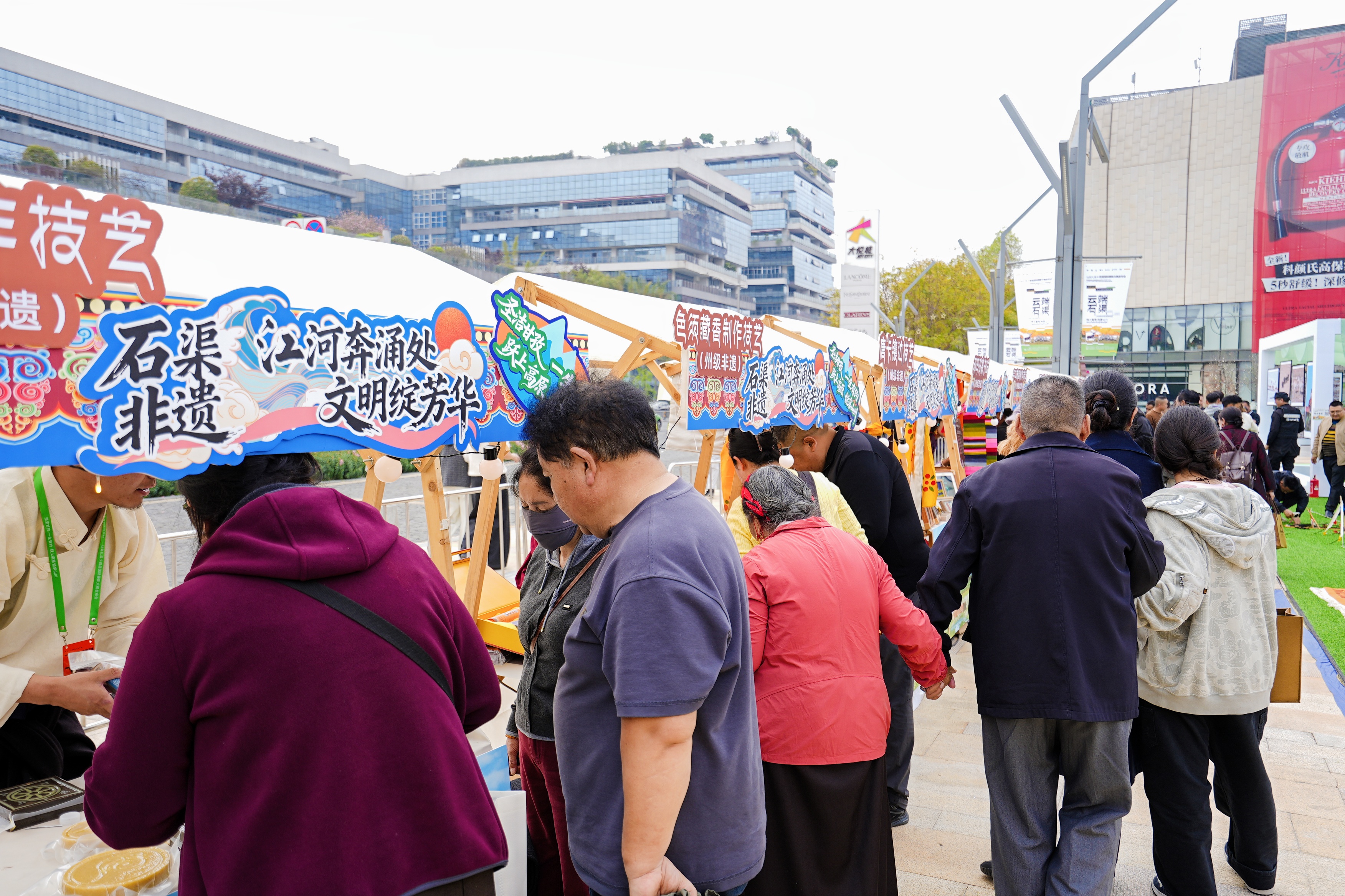 台上推介热烈,台下展销正酣。在非遗暨农特产品展区,浓郁的民族风情扑面而来。牦牛肉干、黑青稞曲奇、青稞醪糟等产品一字排开,吸引众多市民驻足品尝、询价选购。展区另一侧,唐卡、藏香、黑土陶、牛羊绒编织等项目则以现场展演和成品展示相结合的方式,生动呈现着石渠的文化底蕴。